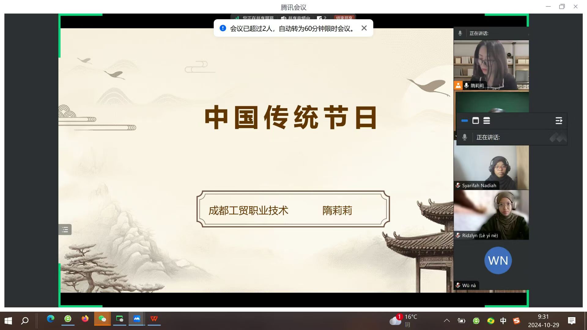 10月28日-11月19日,公司与马来西亚雪兰莪大学开展了为期两周的交换生项目活动,本次活动分为线上教学和线下体验。mk体育对外汉语教师团队曾德静、隋莉莉、王雪梅、曾祥阔以及汽车工程公司王子亦等老师承担了汉语入门、汉字探索、传统文化课程教学,以及中国武术、太极、中国书法和剪纸体验课。雪兰莪大学交换生在体验试学习活动中感受到中国优秀传统文化的魅力和底蕴,在深切感悟中促进跨文化交流,筑起友谊之桥。