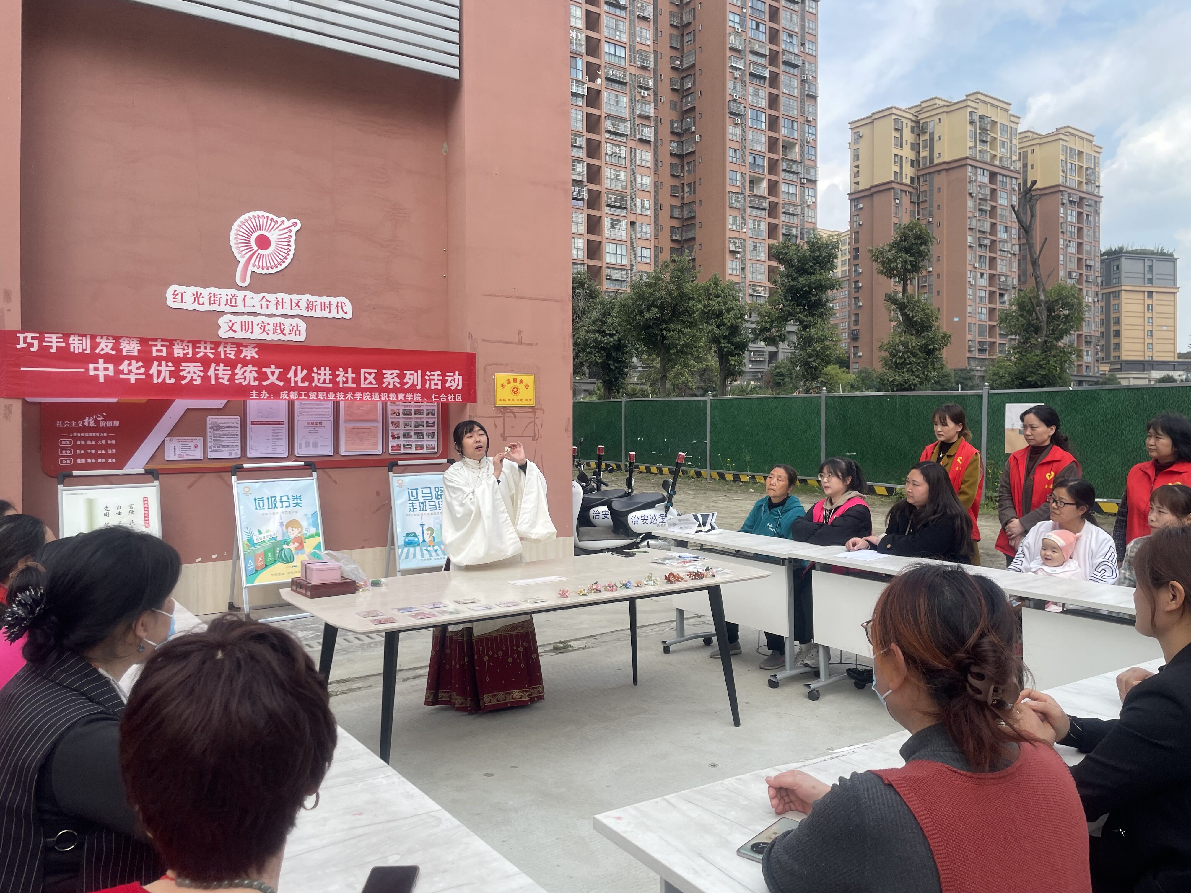 3月29日,公司在郫都区红光街道仁合社区开展了中华优秀传统文化进社区、工匠文化进社区特色公司产品系列活动。活动以“巧手制发簪 古韵共传承”为主题,教师曾叶茂为主讲人,语文教研室和社区居民代表共计40余人参加。
