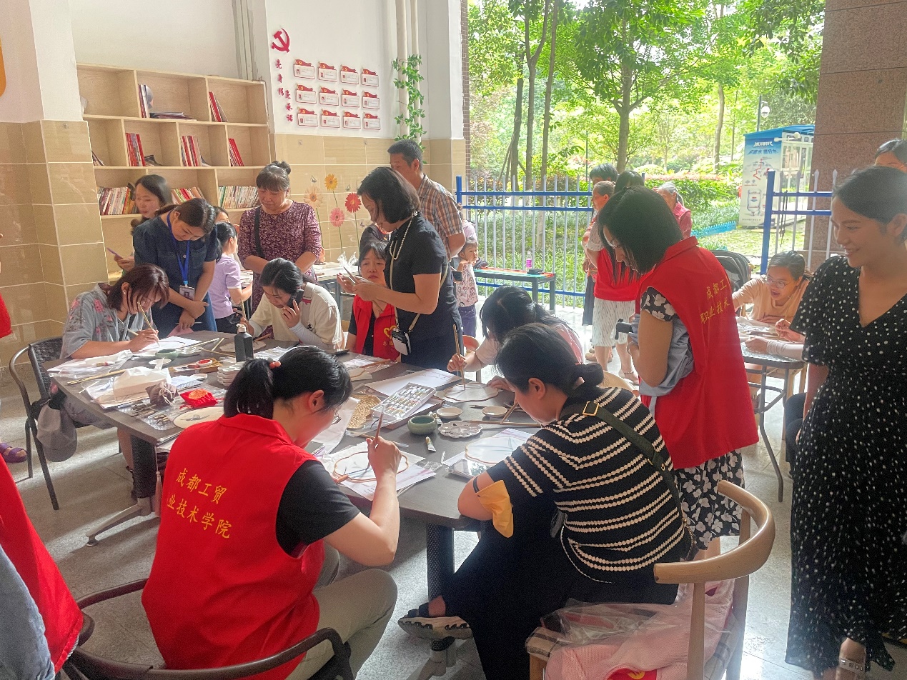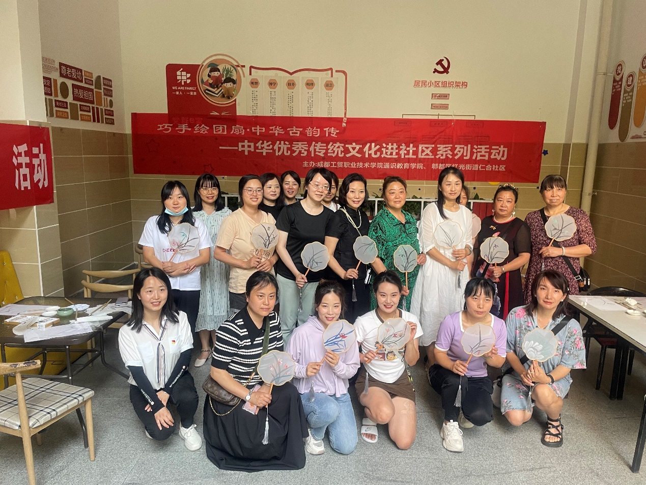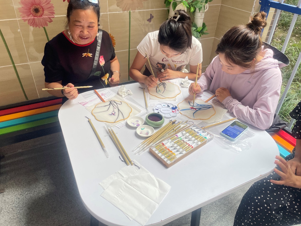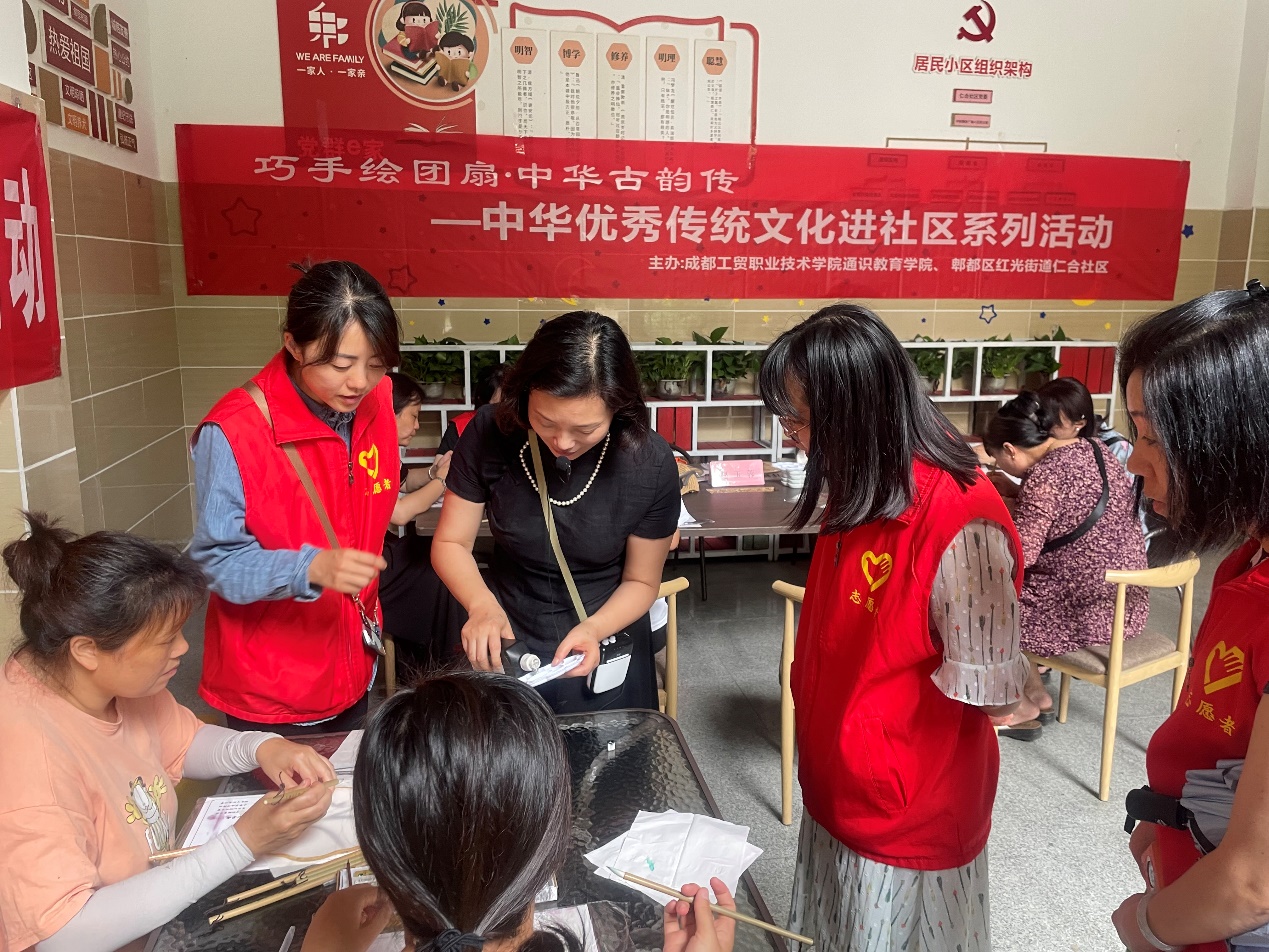“团扇是中国传统手工艺品,凝结了中国千年传统文化内涵,代表着吉祥如意,是一种团结友爱的象征。”活动现场,赵老师从团扇的历史发展缓缓道来,从构图、描摹、上色等方面耐心指导社区居民在团扇上绘制出精美图画,鼓励大家在承袭传统的同时融入创新,创造出属于自己独一无二的作品。活动过程中,公司教师志愿者手把手指导社区居民绘画,从视觉到触觉,全方位带领居民感悟传统文化的艺术魅力,追寻古风之美。