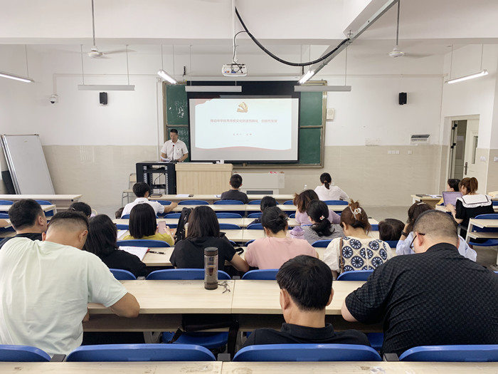 余健以题为《推动中华优秀传统文化创造性转化、创新性发展》讲授了一堂别开生面的党课。他讲到:中华民族五千多年文明历史所孕育的中华优秀传统文化,积淀着中华民族最深沉的精神追求,代表着中华民族独特的精神标识,是中华民族生生不息、发展壮大的丰厚滋养,是中国特色社会主义植根的文化沃土,是当代中国发展的突出优势,是我们在世界文化激荡中站稳脚跟的根基。作为职业教育技能培育人才的灵魂工程师,我们更应以身作则,坚定文化自信、担当使命、奋发有为,为国家培养一批适应社会发展、适应产业需求、德智体美劳全面发展的社会主义接班人。