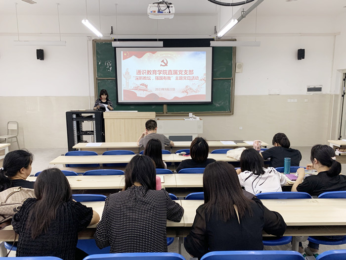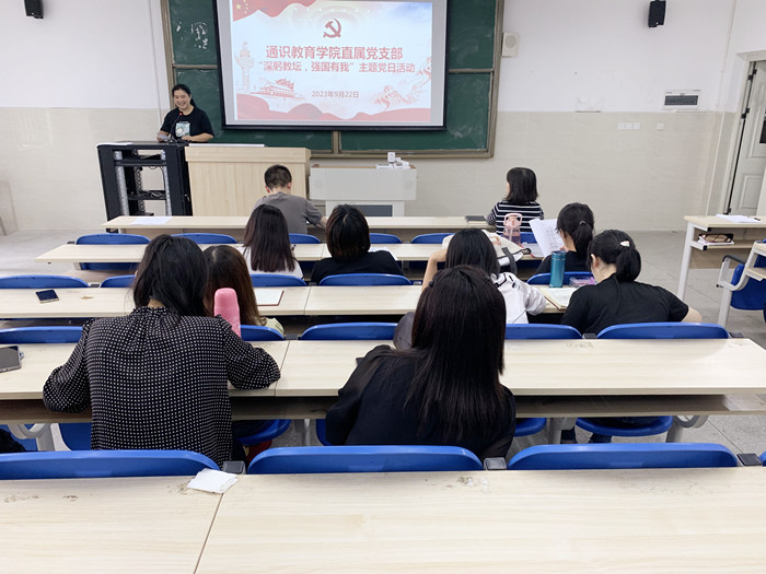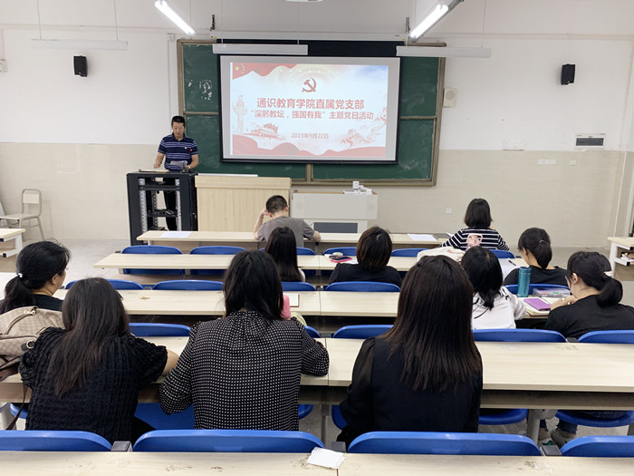 9月22日下午,mk体育直属党支部在支部活动室室开展“深躬教坛,强国有我”主题党日活动,会议由党支部书记余健主持,全体党员参加。