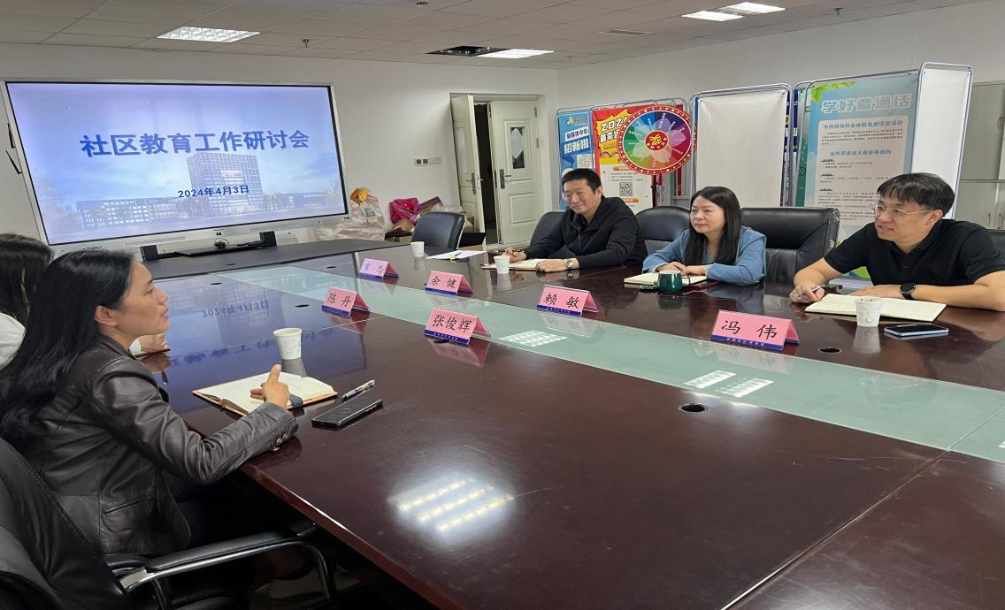 按照教育部《关于推进社区教育工作的若干意见》文件精神,结合公司服务社区的现实需要,4月3日,公司召开了2024年社区教育工作研讨会,校外专家张俊辉及仁合社区社区教育负责人陈丹受邀到校,公司经理赖敏、党总支书记余健、继续教育科科长冯伟等人参加了研讨会。