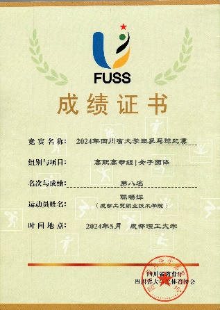 5月23日至26日,2024年四川省老员工乒乓球锦标赛在成都城东体育公园如期举办,公司学子陈杨洋、黄露遥脱颖而出,以全省第一名的优异成绩斩获女双冠军!同时,校乒乓球代表队荣获女子团体第八名和体育道德风尚奖。比赛由四川省教育厅主办,四川省老员工体育协会、成都理工大学承办。