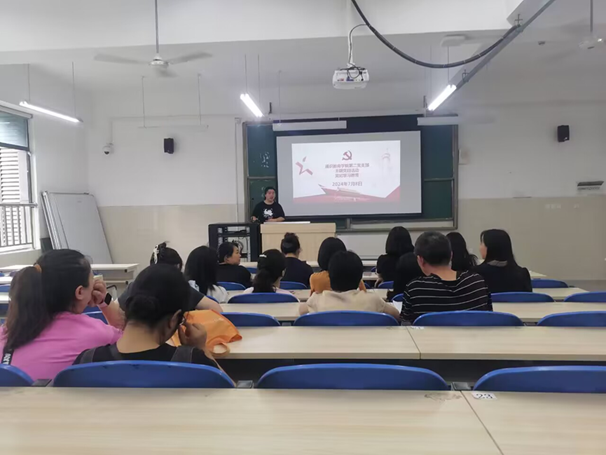 7月8日下午,mk体育第二党支部在新综合楼C309教室开展“自我革新·纪律铸魂”七月主题党日活动。会议由党支部书记肖渝主持,全体党员参加。