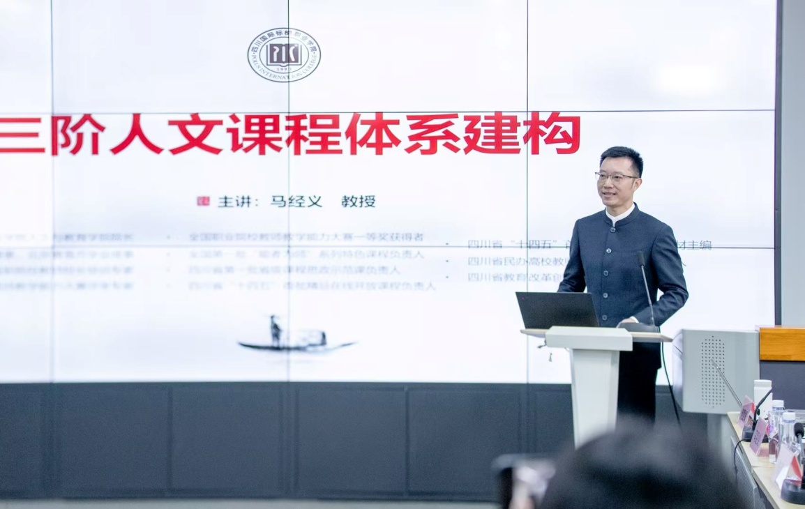 四川国际标榜职业公司人文与教育公司经理马经义以《三阶人文课程体系建构》为交流主题,分享以名著《红楼梦》为载体的中华传统文化课程建设经验,系统科学地阐释了课程体系建设,并介绍了课程在培养员工人文素养方面的独特作用及课程开发的创新举措。