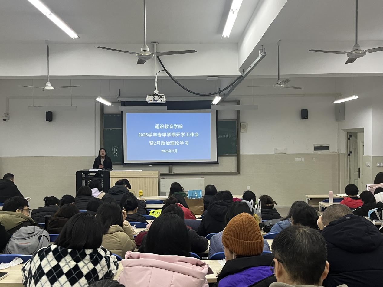 2月18日,mk体育召开2025学年春季学期开学工作会暨2月政治理论学习。党总支书记余健、经理赖敏出席并讲话,全院教职工参加会议。